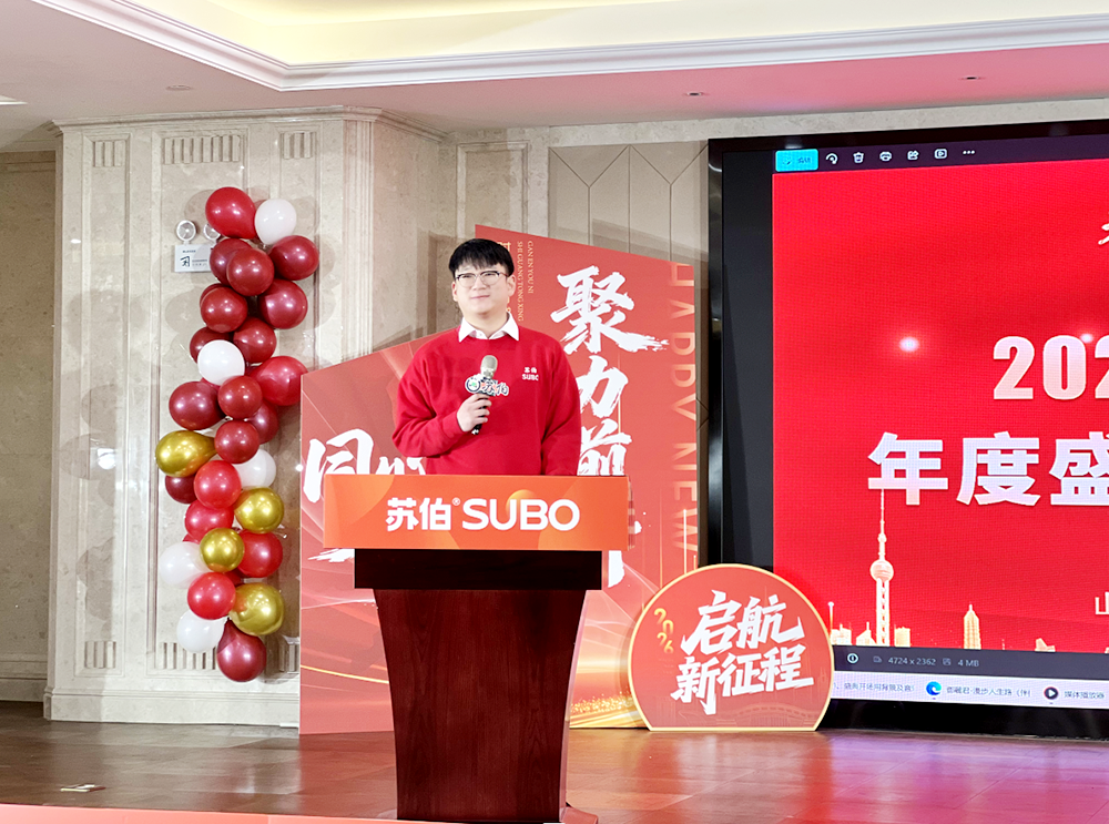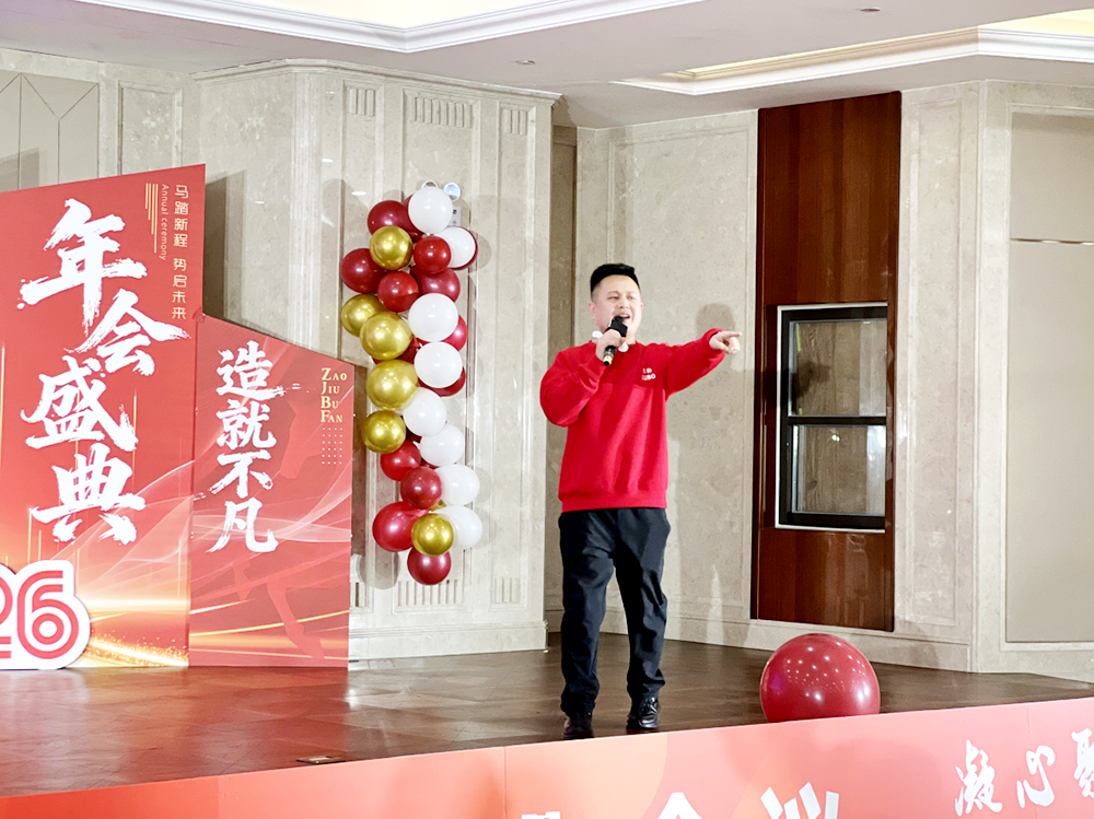 答谢晚宴上,总经理发表深情致辞,向全体员工及家属致以最诚挚的新春祝福,对大家过去一年的坚守与付出致以最衷心的感谢。致辞中,他深情回顾公司 2025 年的发展硕果,勉励全体同仁在 2026 年同心同德、锐意进取,以更昂扬的奋斗姿态,携手推动公司高质量发展再上新台阶,共绘苏伯美好未来。