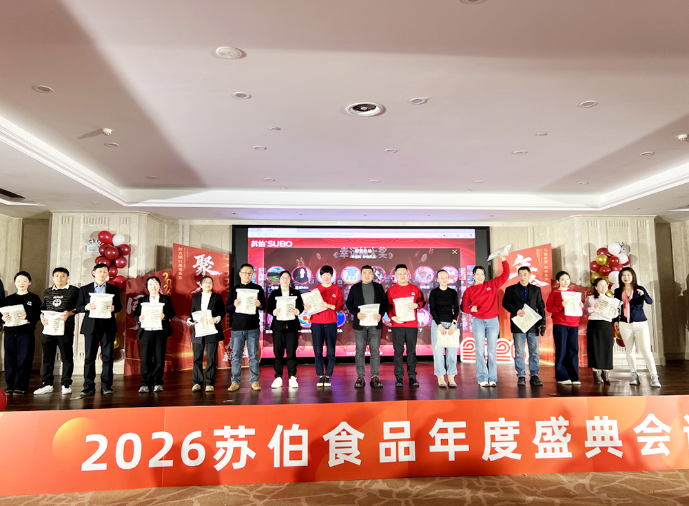 近日,苏伯食品年度盛会圆满落幕。年会全面复盘 2025 年度工作成果,清晰擘画 2026 年发展蓝图,现场氛围温馨热烈、暖意融融,处处彰显着苏伯大家庭强大的凝聚力与向心力。